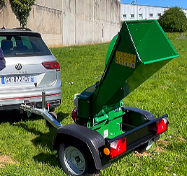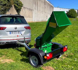 La trémie d’éjection haute (1 085 mm) permet de déverser facilement le broyat dans une remorque, un utilitaire ou directement sur une zone de stockage.